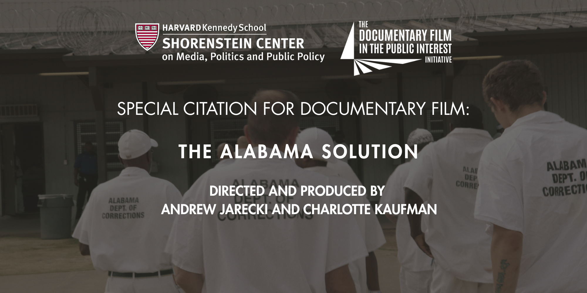 The Shorenstein Center on Media, Politics and Public Policy and the Documentary Film in the Public Interest Initiative (DFPI) will recognize THE ALABAMA SOLUTION, directed and produced by Andrew Jarecki and Charlotte Kaufman, with a Special Citation for Documentary Film at the 2026 Goldsmith Awards.