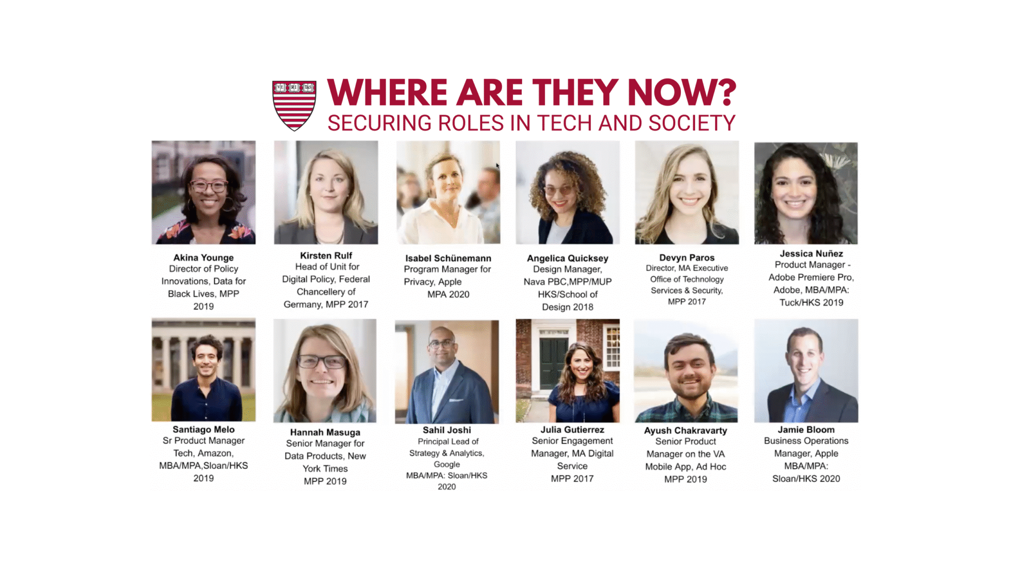 Shorenstein Center Senior Fellow Kathy Pham moderated this discussion with professionals working in the nexus of tech, product, policy, and society. It can be difficult to navigate the career landscape, working on tech for the public interest. Harvard Kennedy School and MIT alumni shared their respective journeys to finding careers in this space, best practices they employed through the job-hunting process, and how they were able to maneuver through private and public sectors to find their ideal role(s).