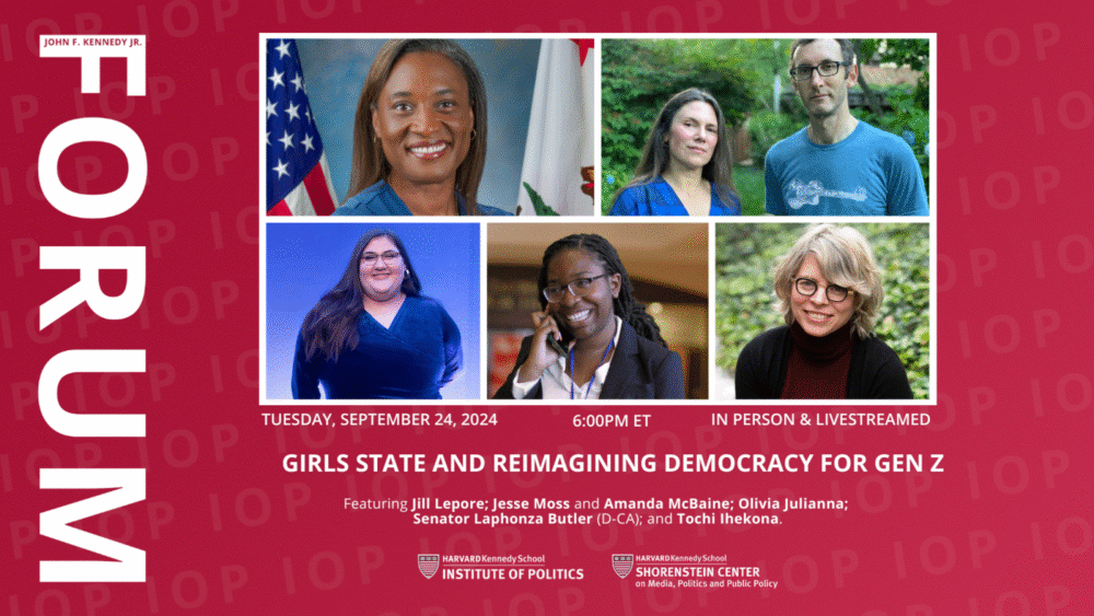 An in-depth conversation about the role of young women working to build a more equitable landscape in political leadership, exploring how younger generations are breaking barriers to engage in civic dialogue and address political polarization. This event was co-sponsored by the Women and Public Policy Program and the Institute of Politics at HKS.
