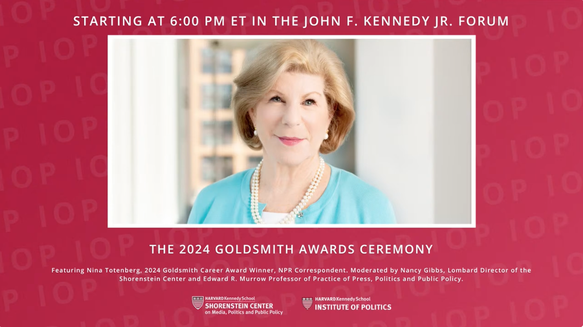 Watch the 2024 Goldsmith Awards ceremony featuring a fireside chat with Nina Totenberg.
